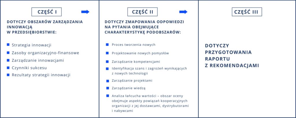 - Audyt kompetencji innowacyjnych: Bada umiejętności i kompetencje pracowników w zakresie innowacji.