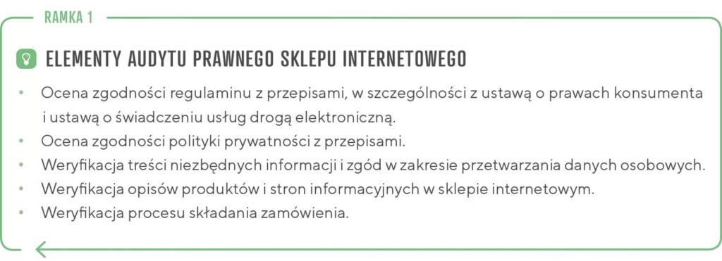 - Audyt prawny: Sprawdza zgodność sklepu z przepisami prawa. Analizuje m.in.: