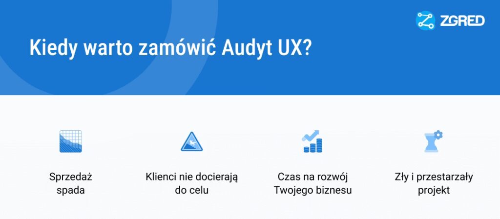 - Audyt UX jest zalecany, gdy zauważysz spadek konwersji, wzrost liczby skarg użytkowników, lub planujesz przeprojektowanie produktu. Jest szczególnie przydatny dla istniejących produktów, które mają zgromadzone dane do analizy.