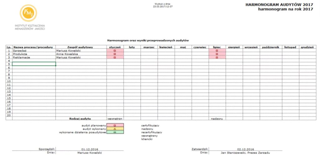 - Działania korygujące (w razie potrzeby). W przypadku stwierdzenia niezgodności, firma musi wdrożyć działania korygujące.