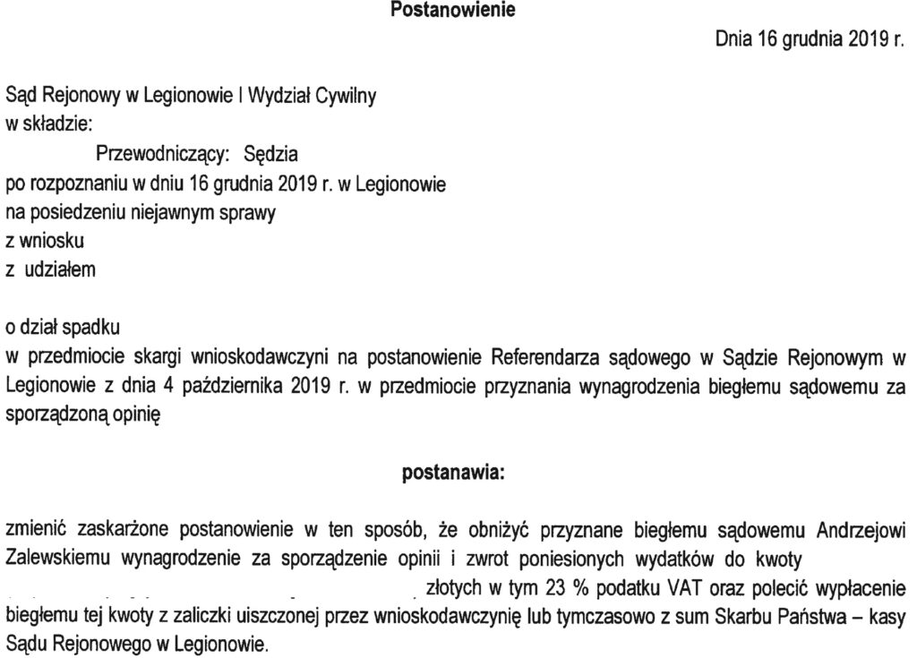 Zaliczka na biegłego sądowego w sprawach cywilnych