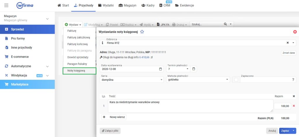 - Numer dowodu wewnętrznego: Unikalny numer identyfikujący dokument w ewidencji firmy.