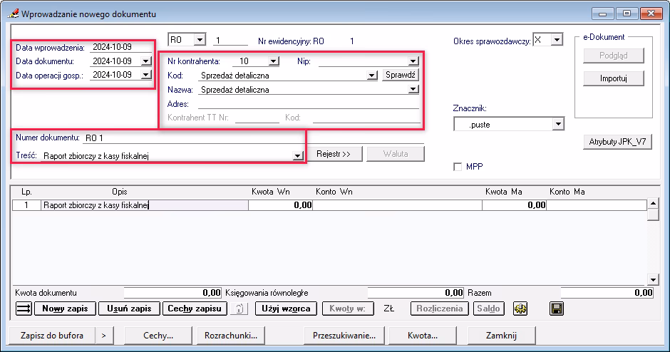 - w innych przypadkach – przedmiot operacji gospodarczych i wysokość kosztu (wydatku).