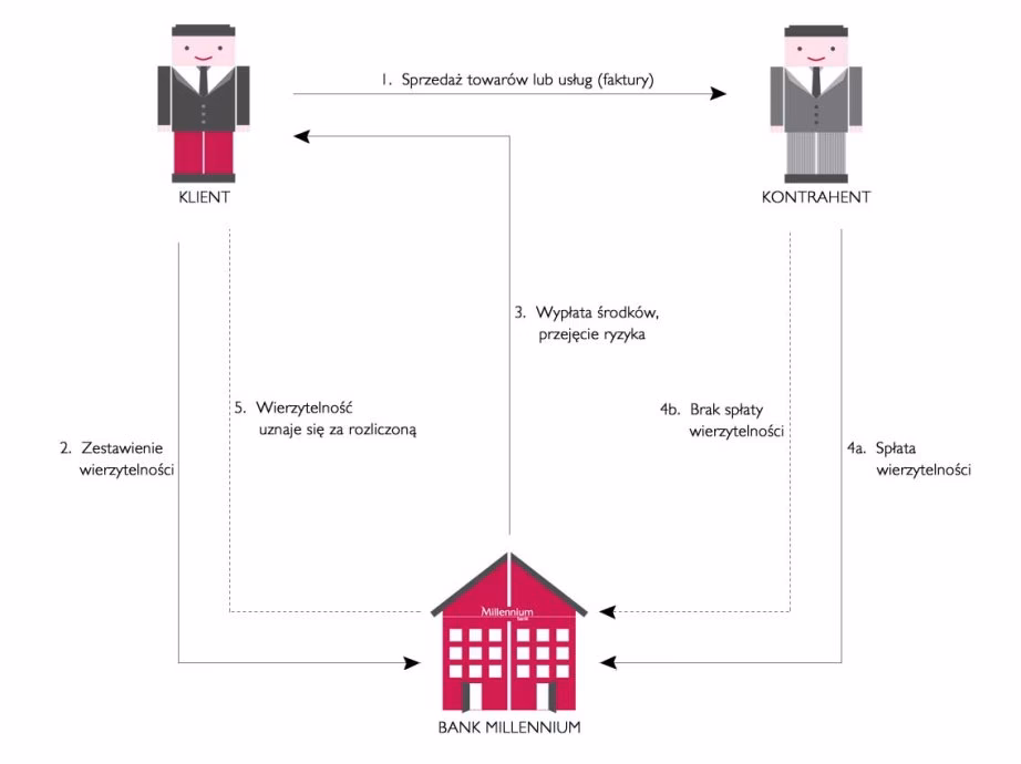 • Redukcja ryzyka kredytowego: Ryzyko niewypłacalności dłużników przenoszone jest na faktora.