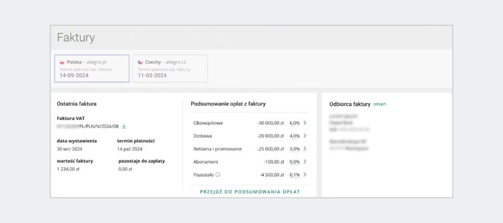 Przykład 1: Przedsiębiorca, posiadający pakiet Allegro Smart, zakupił towar na Allegro. Po otrzymaniu towaru, sprzedawca wystawił fakturę na kwotę 200 zł netto, na której wyszczególnił również koszty transportu w kwocie 10 zł netto. Całkowita wartość faktury to 200 zł netto + VAT, w tym 10 zł netto kosztów transportu.
