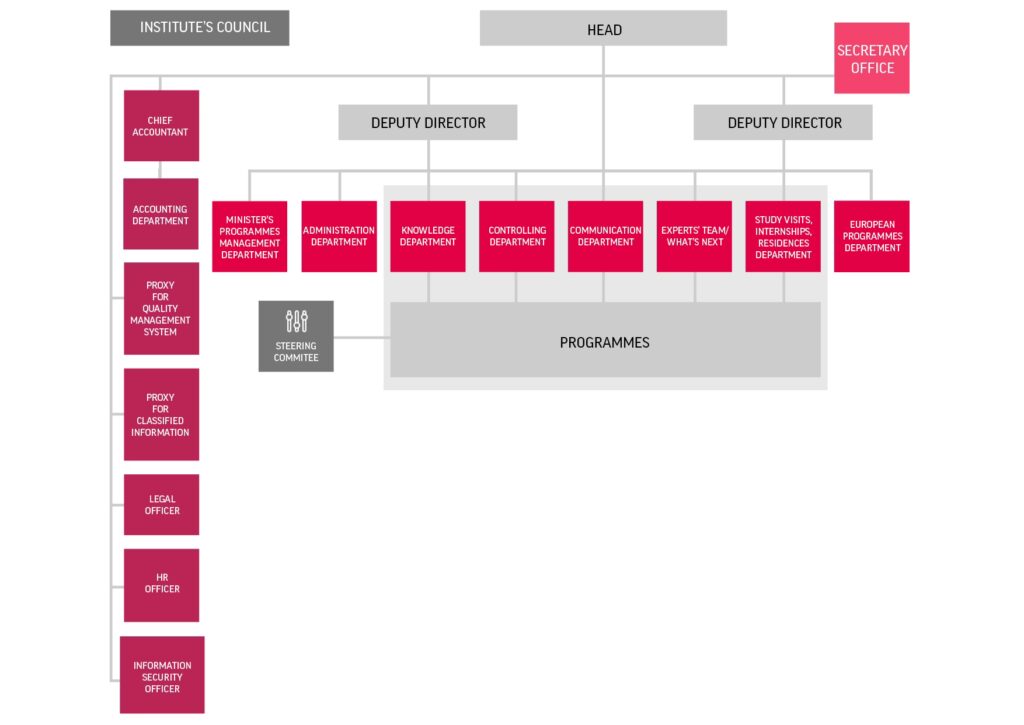 Chociaż Instytut Adama Mickiewicza podlega Ministrowi Kultury i Dziedzictwa Narodowego, posiada on własną strukturę zarządzania, na czele której stoi Dyrektor Instytutu. Dyrektor, zgodnie ze statutem, zarządza Instytutem i reprezentuje go na zewnątrz. Jednakże, nawet w kwestii zarządzania, rola Ministra jest istotna. Dyrektor IAM jest powoływany i odwoływany przez Ministra Kultury i Dziedzictwa Narodowego. Podobnie, zastępcy Dyrektora są powoływani i odwoływani przez Dyrektora, ale wymaga to zgody Ministra.