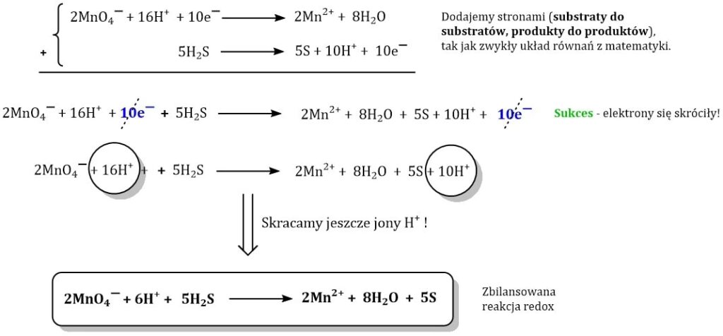 Jednak, jak widzimy, dojście do tego wyniku wymagało sporo czasu i cierpliwości. Metoda prób i błędów nie jest efektywna w przypadku bardziej skomplikowanych reakcji redoks i łatwo można popełnić błąd.