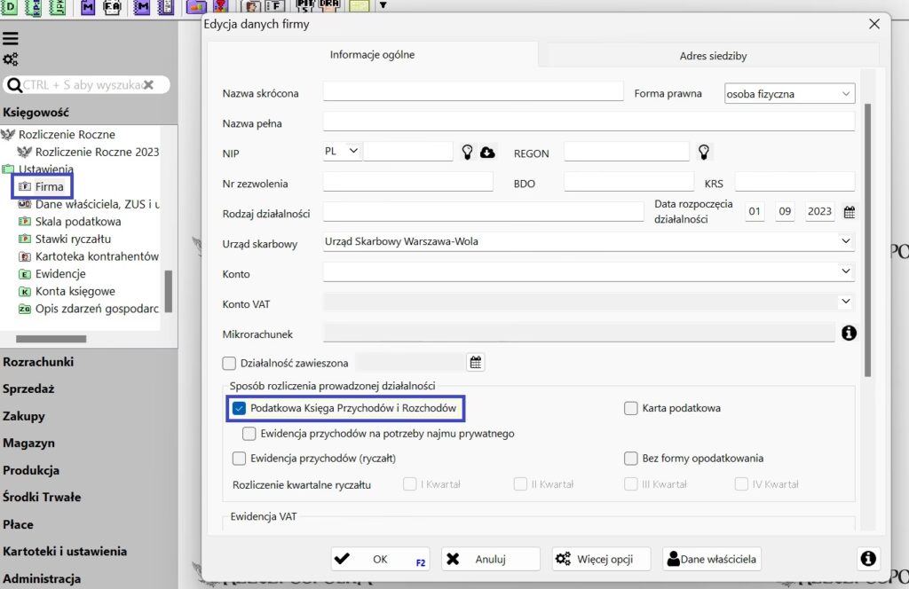 Przykład 1: Standardowa zmiana formy opodatkowania