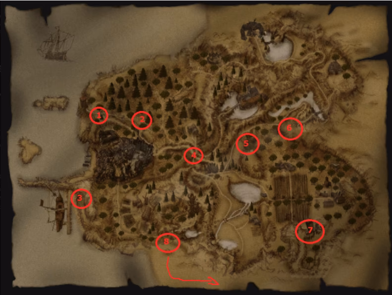 Chata Grega, do której dostęp umożliwia Dziennik Francisa, jest centralnym punktem obozu piratów. Jest to budynek na podwyższeniu, wyróżniający się na tle innych konstrukcji. Przed chatą znajduje się ławka, na której początkowo siedzi Francis, a później sam kapitan Greg. Na dachu powiewa piracka flaga, symbolizująca władzę i dominację Grega w obozie.
