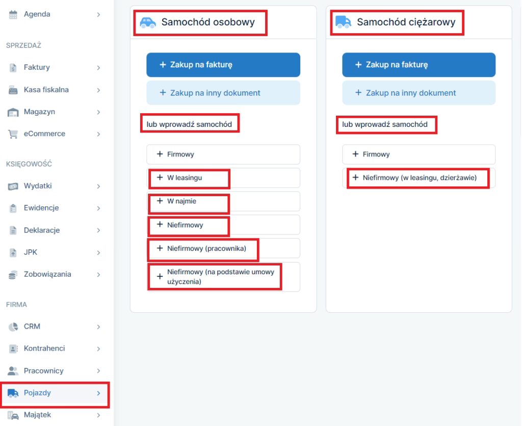- Do 25. dnia miesiąca następującego po miesiącu, w którym poniesiono pierwszy wydatek związany z pojazdem, nie później jednak niż w dniu przesłania ewidencji VAT: W przypadku rozpoczęcia użytkowania pojazdu wyłącznie na potrzeby firmy.