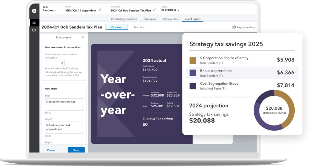 - Automatyczne obliczenia i planowanie podatkowe: Lacerte Tax eliminuje konieczność ręcznych obliczeń, co znacznie zmniejsza ryzyko pomyłek i oszczędza czas. Funkcja automatycznego planowania podatkowego pozwala na proaktywne zarządzanie zobowiązaniami podatkowymi.