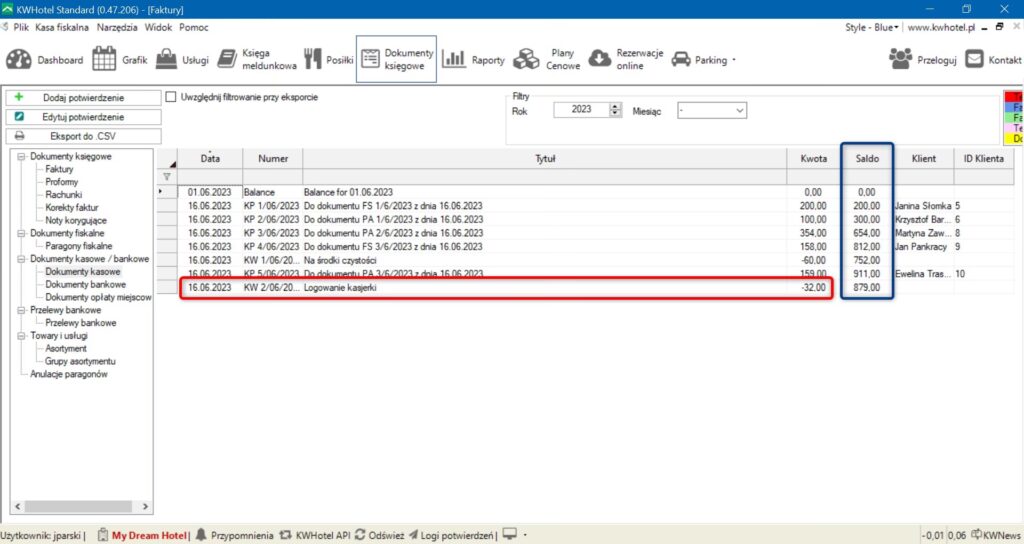 - Dokumentowanie operacji kasowych i raport kasowy