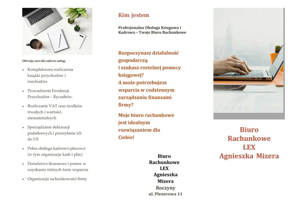 - Usługi dodatkowe: Sporządzanie sprawozdań finansowych, analiza finansowa, pomoc w zakładaniu firm, obsługa faktur, windykacja należności, reprezentacja przed urzędami.