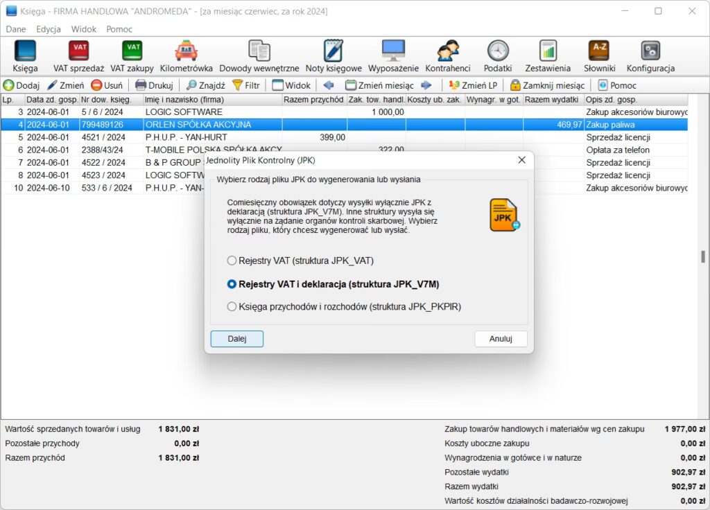 • Sumy kontrolnej (wyliczanej automatycznie)