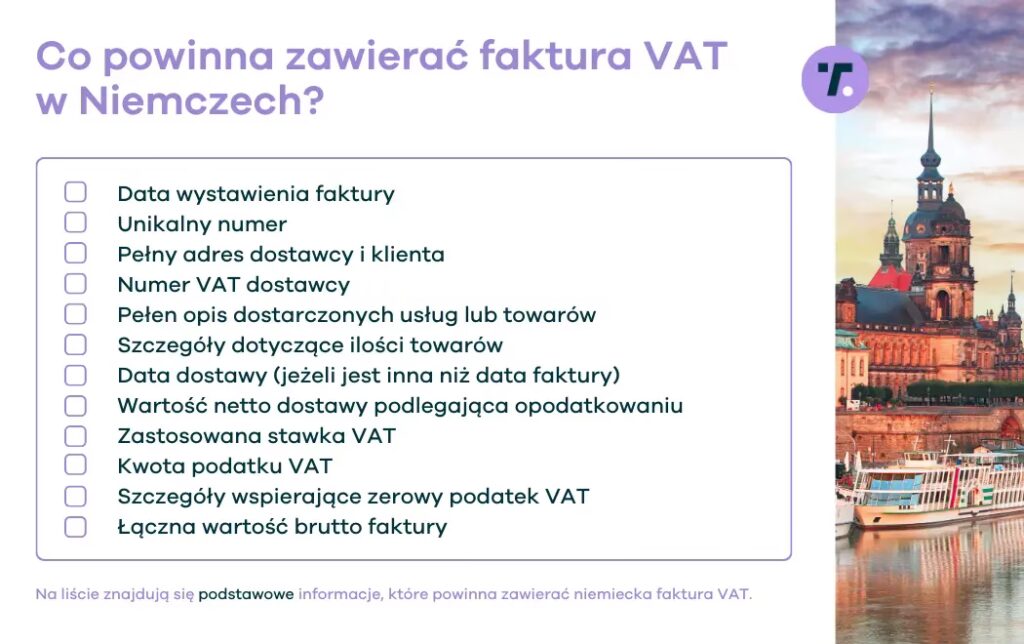 - Numer identyfikacji VAT (Umsatzsteuer-Identifikationsnummer) dla firm dokonujących transakcji transgranicznych w UE (dostawy wewnątrzwspólnotowe).