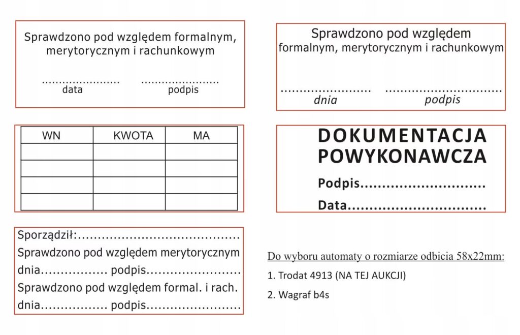 - Średni automat (58x22 mm): To popularny wybór, oferujący więcej przestrzeni. Oprócz standardowych danych, na średniej pieczątce można umieścić również logo firmy. To świetne rozwiązanie dla firm, które chcą wzmocnić swoją rozpoznawalność.