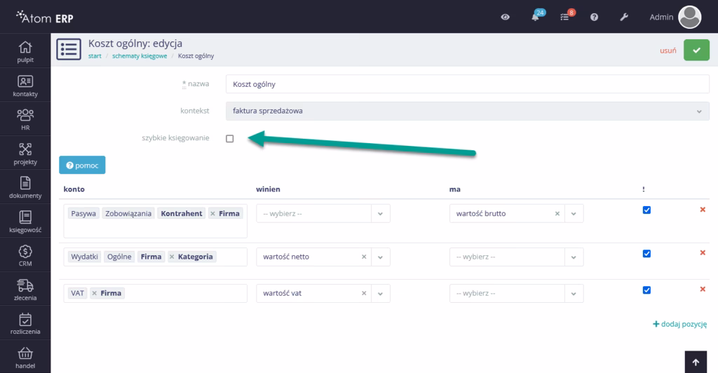 Kredyt: Przychody ze sprzedaży (RZiS) 18 050 PLN