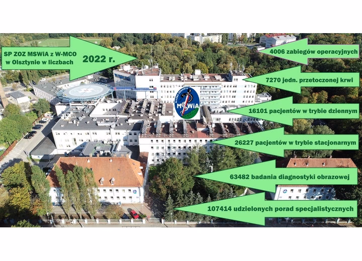 Informacje o szpitalu MSWiA w Olsztynie są znacznie skromniejsze w dostarczonym tekście. Wiemy, że Samodzielny Publiczny Zakład Opieki Zdrowotnej Ministerstwa Spraw Wewnętrznych i Administracji z Warmińsko – Mazurskim Centrum Onkologii w Olsztynie znajduje się przy Al. Wojska Polskiego 37.