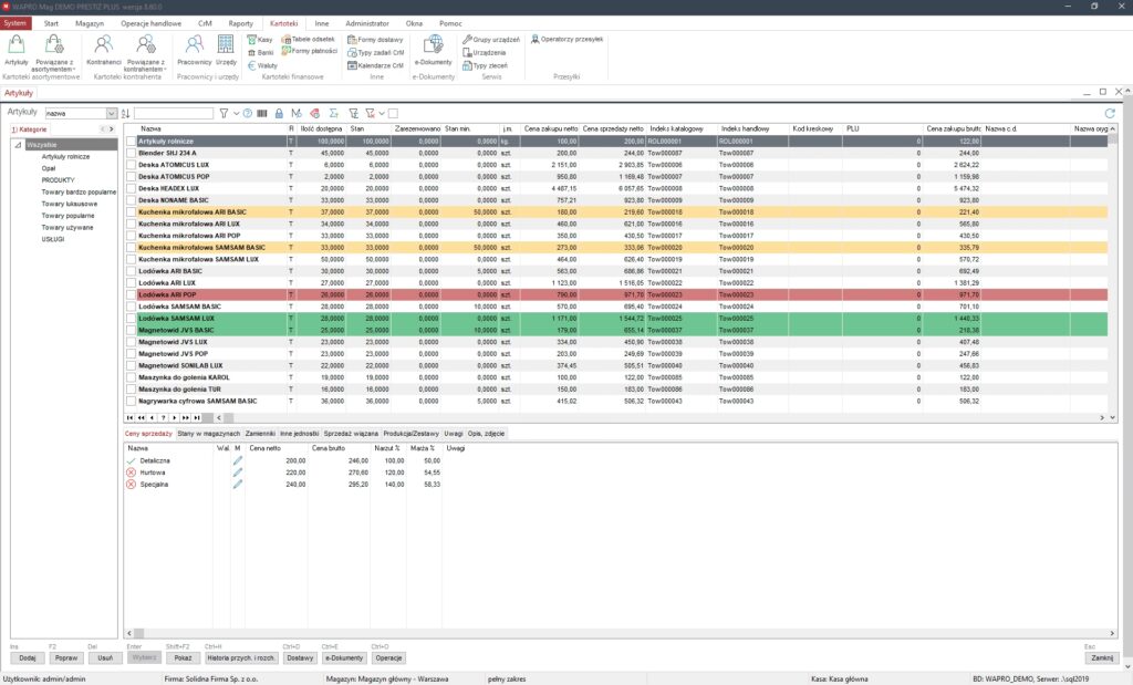 - Wspomaganie sprzedaży: WF-Mag oferuje rozbudowany system wariantów sprzedaży, cenników i upustów, co pozwala na elastyczne zarządzanie polityką cenową i promocjami.