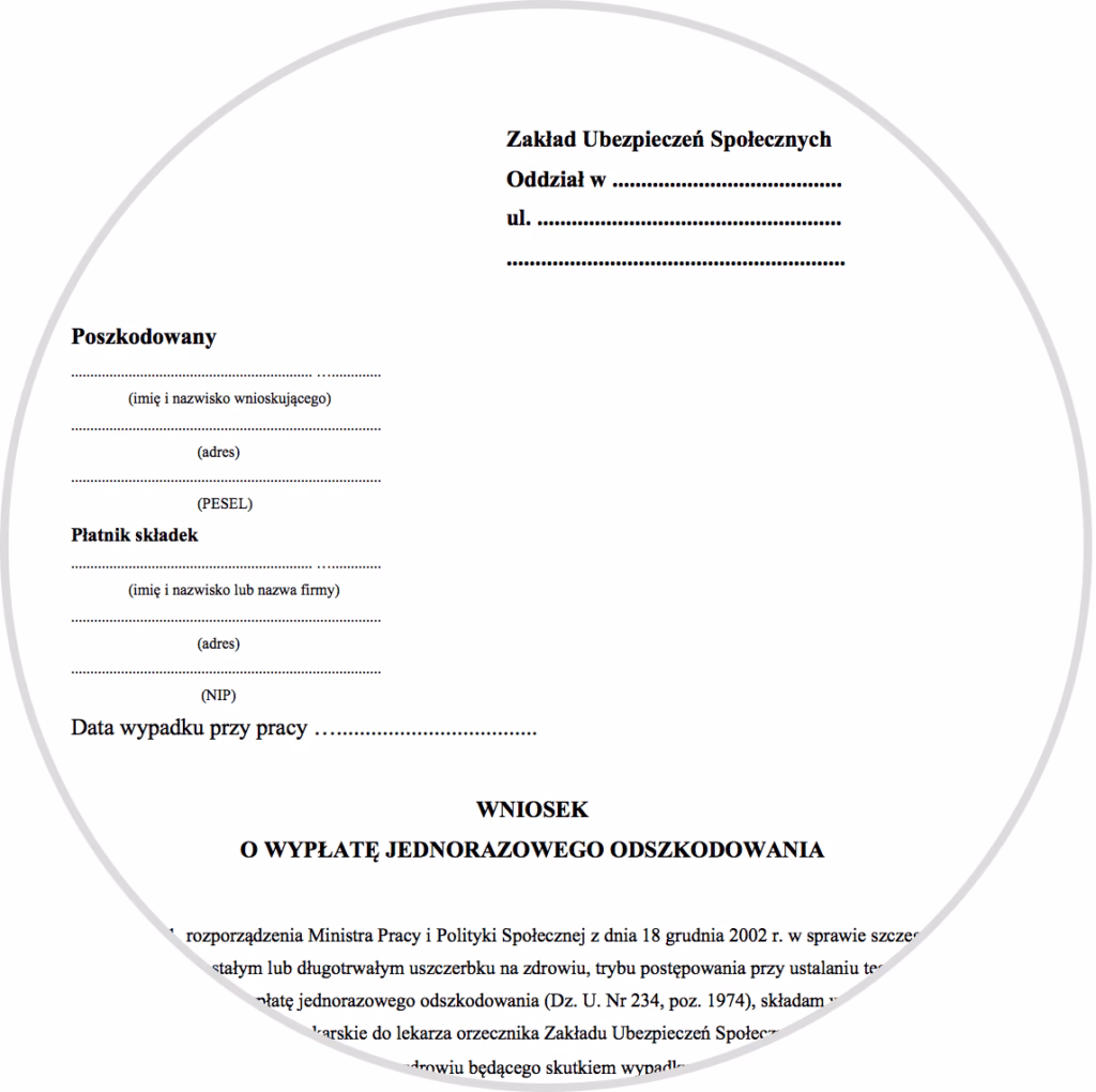 Opiszmy, jak wygląda nasze życie po wypadku, a także jakie rokowania na przyszłość ma nasz stan zdrowia. Jeśli zdarzenie odbiło piętno na naszej psychice nie bójmy się o tym pisać. roszczenia odszkodowawcze - poszkodowany we wniosku zobowiązany jest do wskazania o jakie roszczenia wnioskuje, a także w jakiej kwocie.