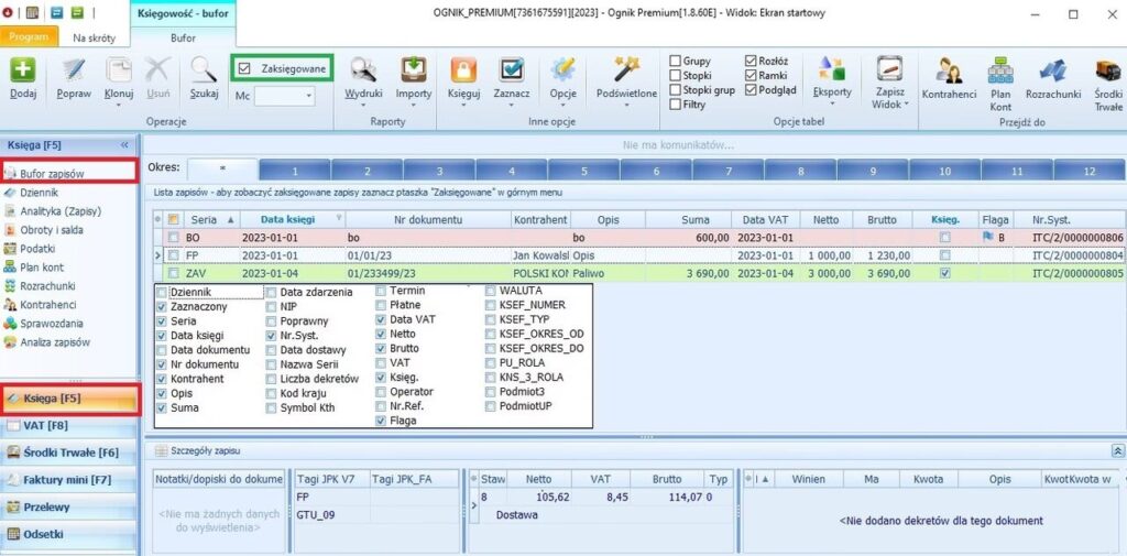 - Przeniesienie do ewidencji: Po weryfikacji i ewentualnych korektach, zapisy z bufora są przenoszone do właściwych ewidencji księgowych. Od tego momentu stają się pełnoprawną częścią ewidencji, są widoczne we wszystkich raportach i uwzględniane w obliczeniach. Oznaczenie bufora znika.